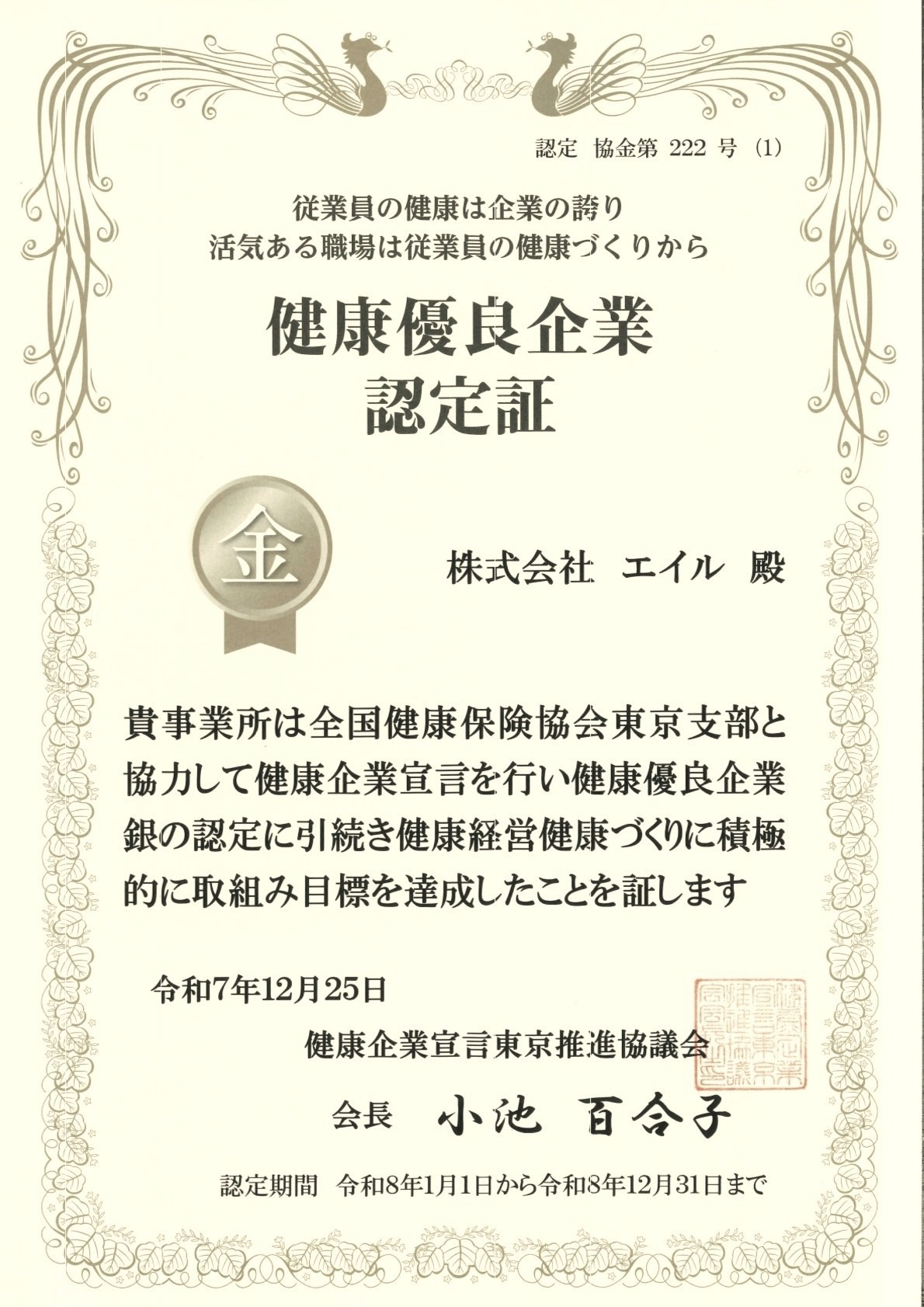 協会けんぽによる、従業員の健康促進に積極的に取り組む企業を認定する制度。